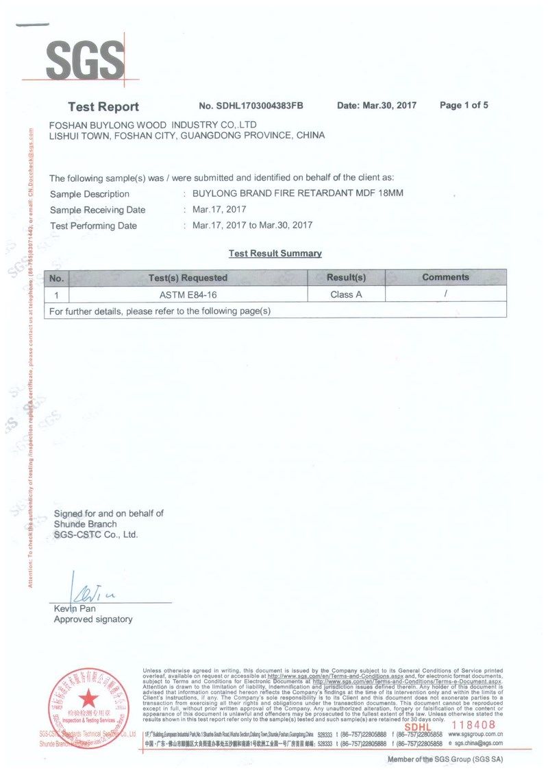 美標 ASTM E84 CLASS A 阻燃密度板